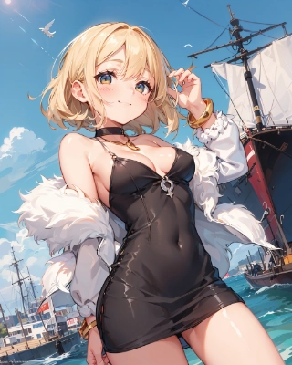 (cute illustration:1.2), high-resolution, ultra-detailed, best-quality, resort beach town cityscape, beach scenery, crowd people, crowd around, smile, fun,
