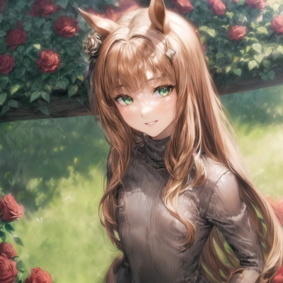 emerald eyes,beautiful detaileded eyes,horse ears,short horse tail,(brown long hair:1.2),