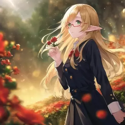 {ultra-detailed}, 8K-wallpaper, {dynamic angle}, {{{best quality}}}, highly detailed skin, {{{kawaii}}}, {{{{young girl}}}}, 1girl, 14-age, blonde long hair, asymmetrical bangs, detailed pink eyes, {{{rimless eyewear}}}, {{{{masterpiece}}}}, fluttered high school blue uniform, in high school ground, holding a valentine chocolate in hand, arms up, 4 fingers, 1 thumb, medium breasts, elf, photo, bokeh, Chiaroscuro, backlighting, detailed glowing hair, detailed clothes, impressionism, sunlight, running