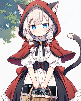 little girl,(adorable:1.2), cat ears,cat tail,casual fashion