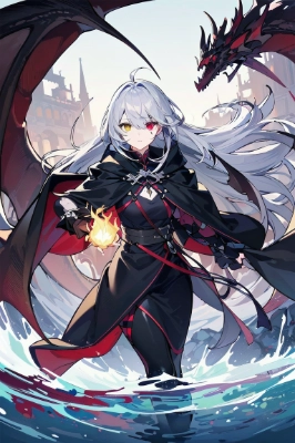 masterpiece, best quality, extremely detailed, anime, girl, skirtSlightly longer gray hair,A slender and melancholy face,(( heterochromia,left eye is as blue as a clear lake shining faintly, right eye is a red eye that looks like crystallized flame,))There is a crying circle under my left eye.A golden seven-pointed star pattern appears over his right eye.She wears a red stole around her neck,He has a black bandage wrapped around his right arm.wearing a black robe,The skin is white,In his hand, he holds a Grim Reaper\