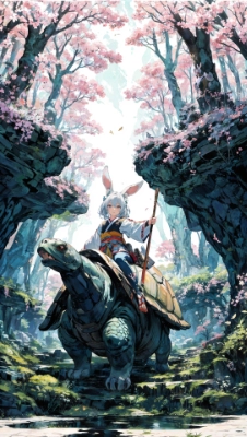 A carefully crafted composition, dutch angle, Ninjas scattered around, (A group of ninja) suddenly appeared with a majestic waterfall in the background.
