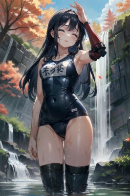 スク水NINJAちゃんが滝行に挑むようです! …忍者ちゃん修行にならないのでもっと滝に近寄ってください(プロンプトで催促)