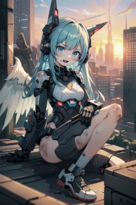 masterpiece, best quality, best quality drawn, (an anime girl in magical girl costume), (magical girl), (((torn purple magical girl costume))), thighs, ((Sitting with one knee up)), purple hair, short bob hair, ((regrettable face)), (angry), open mouth, (((injury)), russet brown ribbon on chest, brooch on chests, (torn black tights), purple ruffle miniskirt, crescent moon hair ornament, purple boots, slender body, (skyscrapers), (broken magic stick), a smagic stick in the ground, sunset, twilight, outdoors, (insanely detailed), Documentary, cyberpunk, small breasts,