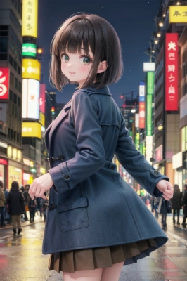 (masterpiece, best quality, ultra-detailed), 17 years old, cute girl, light smile, looking back, (Blue hair, blunt bangs, bob cut), (season winter serafuku) season autumn, classroom, red maple, blurry background ,,