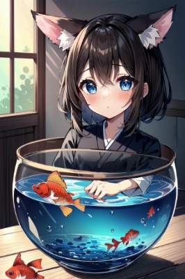 いつもはあまり使わないモデルとシンプルなPromptsにしても金魚は空を飛ぶ。 きっと、そういうものなのだろう。 深く考えないことにする(思考放棄していいよね?)。