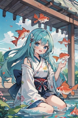 masterpiece, best quality, extremely detailed, anime, girl, pink hair, light pink eyes, rabbit ears, sailor collar dress, smile, chibi character, one eye closed, bright background, clear sky,