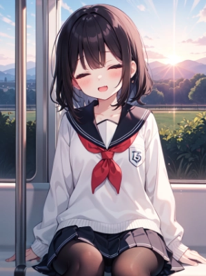 (on station platform, waiting for train, cold, winter morning, early morning, countryside:1.2), schoolgirl, black coat, black tights, dark hair, mini skirt, muffler, dark sky, white breath,