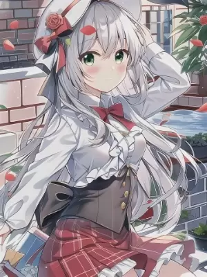 長いウェーブがかった銀髪に緑色の目、可愛らしい笑顔が印象的な元気な女の子。チェック柄のスカートと白いコートがおしゃれな白いお嬢様学校の制服に帽子と黒いコルセットがアクセント。 雪が舞う古風なフランス風の街並み、画面全体は白を基調としている。 以上をBingAIで詠唱変換して出力したもの。もっと明るく、メリハリのあるものにしたい