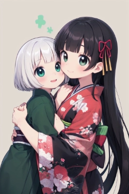 (((very longest hair))),black hair, smile,straight Hair,hair ribbon,mintgreen stripe,Black Eyes,flat chest,straight Across bangs,princess Cut, Very Long Sideburn,roundry Head,Droping eyes,(((solo))),cute,Meekness,Bob Cut,long back hair,12 years Old,Kimono, dogs,(((dogworker))),park,autumn leaves,maple,,