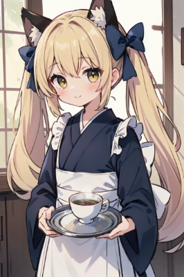 masterpiece, best quality, extremely detailed, anime, (fantasy:1.3), 1girl, kawaii, solo, 18yo, medium breasts, (holding book:1.2),BREAK,white blouse, pink coat, shoulder strap, pink frilled skirt, pink bow tie, BREAK,beautiful detailed face and eyes, smile, blush, gray hair, long hair, low long ponytail, hair between eyes, green eyes, flower hair ornaments, long flap-eared dog ears,BREAK, classroom, blackboard,
