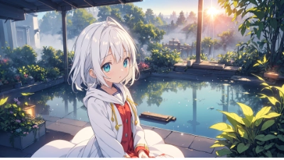 ,multi action,tracking shot,(High sensitivity ISO:1.8),(high saturation:1.5),(rule of thirds:1.8),(vivid color scheme:1.3),(ultra detail extremely scrutiny hand drawn anime style aqua water color streamline perfection illustration painting art),(beautiful dream lights:1.6),(ultra detail extremely scrutiny gradation dream elegant particle mountain river cloud art cgi effect background:1.4),(ultraDetails extremely scrutiny exaggerated kawaii anime character like character),8k,(ultra detail extremely scrutiny WDR HDR Photoshop ultra best quality UP:1.5),(particle beautiful elegant vivid luster vfx effect:1.4),(gloss Whitening fleeting tenderness innocence kawaii anime face:1.4),(smile:0.7),(Fluffy vivid colorful anime texture taste:-0.2)(snow-white skin milky skin:1.2),Fluffy medium-length messy side bun silver hair,emerald eyes,Fashionable hood,(fine embroidery white blazer suit),(check pleated skirt:1.2),cheerful,shadow light,illusion,mystic,mystery,pink heart,blush,(ultra detail extremely scrutiny gradation scenic overlook it's a beautiful world: Photoshop), <lora:add_detail:0.5> <lora:sharpen-soften:0.1>