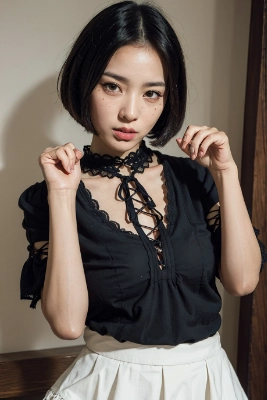 "(high resolution:1.2),(masterpiece:1),excellenty intricate finely beautiful detailed,beautiful detailed clothes background,(beautiful detailed face:1.4),(beautiful detailed 1girl:1.15763),(contrast:0.8), (photorealistic:1.3),skinny body,hime cut , black hair eye,porn,Sober,
