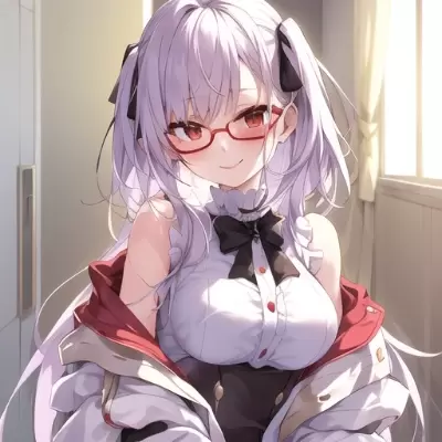 | style = anime | color = rich | shadow = clear | highlight = clear | feature = soft | girl | petite | high school | smile = gentle | face = turn to you | glasses = red without rims | eye = large round sleepy childish and light green | hair = light purple straight past shoulder flip out near ear | shirt = long-sleeved white | corset = black | skirt = brown flared | coat = white properly worn on right shoulder loosely draped on left pocket