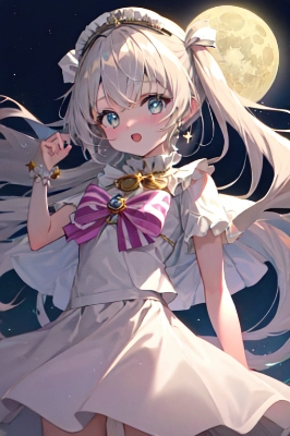 (fantasy:1.2), 1girl, solo, smile, cute, 6 yo, magical girl wearing, cowboy shot breaktracing the trails of stars, The night sky is deep, shimmering stars, moon, clowd, bright stars, breakmasterpiece, best quality, extremely detailed, anime <lora:flat2:0> <lora:hairdetailer:0.4> ,