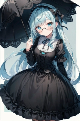 Japanese anime style, moe illustration, (gothic lolita dress:2.0), beautiful girl, fair skin, long black hair, black and white lace dress, intricate skirt design, fluffy long sleeves, elegant ribbon at the neck, graceful and calm expression, large blue eyes, vague background of an old-fashioned building, quietly smiling towards the camera,