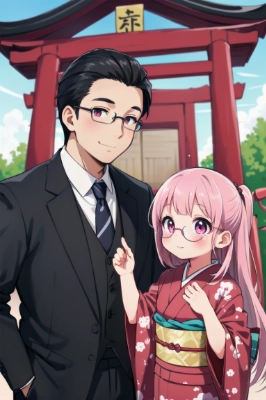 「お姉ちゃん、このぬいぐるみ可愛くない…」「え〜、結構可愛いと思うけど?」って感じでしょうか(^^;; プロンプトは結構いいかげんなんですが、なんか偶然いい感じの絵ができました。(^^;; もうちょっと色々試してみようと思いますが、多分上手くいかないだろうな…(ー ー;)
