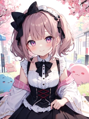 (lolita fashion, long skirt, detailed outfit, dark hair, kawaii:1.2), (light novel:0.8), Harajuku, street, (yumekawa, pastel color, pink tone, dreamy:0.9), (eyes focused, looking up to the viewer, from avobe), sausage curls,cute pose,