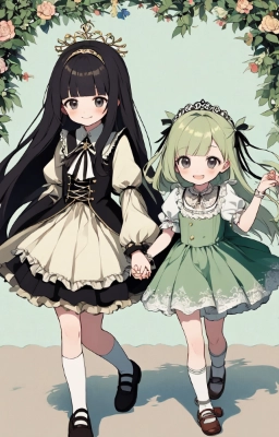 (((very longest hair))),black hair, smile,straight Hair,hair ribbon,mintgreen stripe,Black Eyes,flat chest,straight Across bangs,princess Cut, Very Long Sideburn,roundry Head,Droping eyes,,cute,Meekness,Bob Cut,long back hair,12 years Old,Kimono,couple,