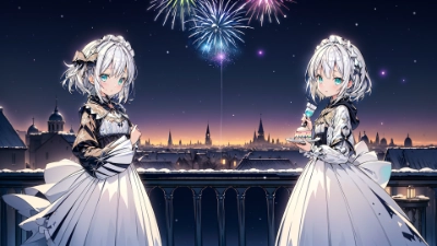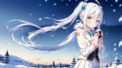 from side,dynamic multi action,dynamic tracking shot,8k,(handheld:1.2),(High sensitivity ISO:1.8),(high saturation:1.2),(diagonal composition:1.2),(vivid color scheme:1.3),(ultra detail extremely scrutiny hand drawn anime style aqua water color streamline perfection illustration painting art),(ultra detail extremely scrutiny gradation Uyuni salt lake cloud reflection art cgi effect background:1.4),(ultra detail extremely scrutiny WDR HDR Photoshop ultra best quality UP:1.2),(beautiful elegant vivid luster vfx effect:1.4),(gloss Whitening fleeting tenderness innocence kawaii anime face:1.4),(smile:0.7),(Fluffy vivid colorful anime texture taste:-0.2)(snow-white skin milky skin:1.2),Fluffy medium-length silver hair,Fluffy medium-length vivid blonde hair,emerald eyes,Fashionable hood,(fine embroider lolita blazer suit:1.2),(pleated skirt:1.2),cheerful,shadow light,illusion,mystic,mystery,carnival night,party night,,,cold winter breeze,muffler,globe,coat,north wind,space,(ultra detail extremely scrutiny gradation scenic overlook it's a beautiful night city world: Photoshop processing:1.7),night,mirage,phantom,light white blue,panorama,mountain,,<lora:add_detail:0.7> <lora:sharpen-soften:-0.2>