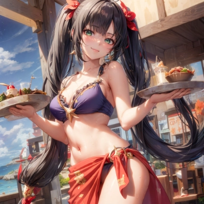 hires, cinematic angle,beautiful face,finely detail, masterpiece, best quality, ultra-detailed,Photorealistic,8k,lens flare,intense shadows,Studio,game cg,official art,fantasy,1girl, solo,cowboy shot,looking at viewer,<lora:flat2:-0.4>,<lora:dehya1-000008:0.7>,(dehyadef:0.3),dehya \(genshin impact\),(cool woman,mature female,mature,30 years old:1.1),(aqua eyes,black hair, long hair,flipped hair,slanted eyes,cat hair,:1.2),medium breasts,smile,(bartender wear,front tie top,midriff peek,vest,necktie,pants,:1.3),(standing,:1.2),(fireplace,snowing outside,snow mountain,elegant bar,:1.3),(bar counter table,display alcohol bottles,:1.2),window, <lora:ramen_v1.4:0.5>, <lora:GoodHands-beta2:1>