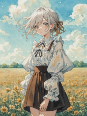absurdres, highres, (extremely detailed fine touch:1.3), ///, girl, light blonde (super very short hair:1.3) (parted bangs:1.3), mixed media, diverse materials, unexpected combinations, creative exploration, vibrant composition, (zentangle:1.3), (flower:1.3)