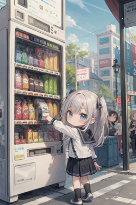 masterpiece,best quality,ultra detailed,detailed face, symmetric highly detailed eyes,anime,solo,short, tiny, skinny legs, thin legs, little, (inside dilapidated building:1.3),(broken vending machine:1.2),(rusty vending machine:1.1), laugh,indian style,sitting,fang ,hoodie,(black hair), hair over one eyes,((highlights hair, Blue streaked hair)), long shot,wide shot,<lora:hairdetailer:0.7> ,,,