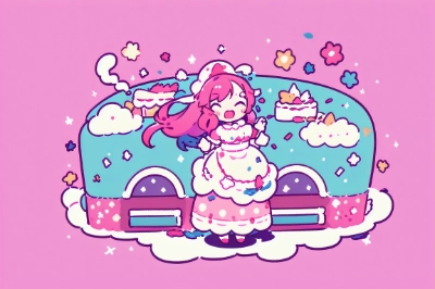 masterpiece, best quality, extremely detailed, 1girl, longhair, long skirt, long sleeve, pink hair, celebrate, confetti,
