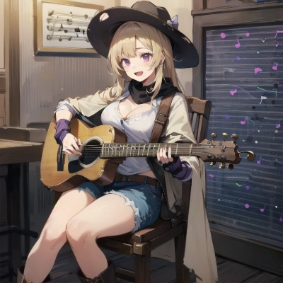 masterpiece, best quality, extremely detailed, anime, 1girl, solo, 18yo, large breasts, (singing:1.2), put hands on chest,BREAK,luxury purple one pieace party dress, pale purple shawl, cleavage, pearl necklace with blue flower, layered skirt,BREAK,beautiful detailed face and eyes, smile, purple hair, long hair, hair flaps, flipped hair, blue flower hair ornaments, hair between eyes, blue eyes, open mouth,BREAK,dense forest, river, sunlight filtering through trees, lens flare, bokeh, sunset, (a lot musical notes:2.0),