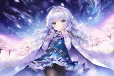 masterpiece, best quality, masterpiece,soft touch picture,ultra Details intricate highres. fix,ultra Details,ultra intricate,ultra rich detailed colored pencil+ink+anime,soft atmosphere,front girl,nostalgic,ultra details dynamic magic Cherry Blossoms powder snow World,dynamic warmth scattered stars effect,dynamic fresh luster+glare+strobe+bounce+flare top light deep snow sfx effect,continue on forever,angel star chain light, out of focus,turn around,soar up,smiling face,Little Girl,Young+loli girl,(ultra Details etailed intricate very ( cute) friendly (kawaii) face (kawaii) friendly (cute)),vivid colorful fluttering hair,vivid emerald eyes,ultra Details light novel,Ultra detailed and complex Magical suit clothes embroidery+ruffled skirt,ultra details elegant complexity intricate coat,tights,gust of wind,2arm,2hand, 5finger,extremely detailed CG