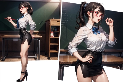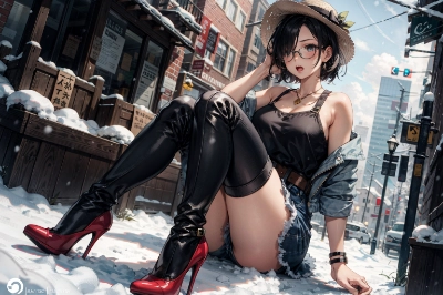 ((detailed facial features)), ((perfect female figure)), ((perfect anatomy)), ((masterpiece)), ((best quality)), ultra detailed, high resolution:1.8, intricate detail, ultra detailed skin, (cute:1.4), (open mouth):1.5, (1girl:1.5), (solo:1.5), (girl wearing a cap :1.5), BREAK (black hair:1.5), one side up, parted bangs, brown eyes, detailed face, beautiful eyes, (slanted eyes:1.2), large breasts, glasses, stilettos, <lora:flat2:-0.5>, BREAK from above, looking afar, profile, wariza, swimming in the pool, paw pose, hands on chest, smock blouse, riders jacket, corset vest, no belt, long tiered skirt, tights, boots, (stilettos:1.5), BREAK cloudy sky, grass field