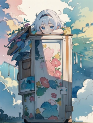 floating island, bubbles,large bubbles,small bubbles,(letters, letter box, a lot of letters:1.3), post, post office,