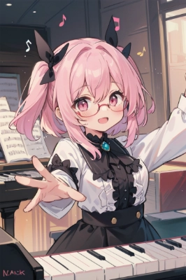 masterpiece, best quality, extremely detailed, anime, 1 female child, solo, (wearing a shark-head headwear:1.3) ,(arms up), pink eyes, pink hair, open wider mouth, (shark teeth:1.3), (red round shaped eyeglass), leaning forward, grin , in the pool , wide shot <lora:boldline:-1> ,