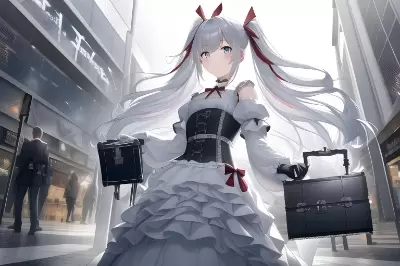 masterpiece, best quality,(industrial design), (8k wallpaper), (detailed CG), ((frills)),((1 girl)), (solo), (black and white monotone (frill clothes:1.0) monotone), big top sleeves, floating, beautiful detailed sky,it,ribbons, buttons, bare shoulders, 1girl, :<, bangs, (silver hair, silver eyes silver), silver waist down long hair, silver wide-eyed gray, close-up, gloves, gradient_background, long_sleeves, looking_at_viewer, no_headwear, o_o, parted_bangs, smile, standing, hair_bow, (Scarlet ribbon Scarlet:1.0), bowties,large bust, ((((She's flying kick pose)))), (tokusatsu henshin belt), ((backlight)), (((in an abandoned factory))), BREAK (mini ((single) side ((red:1.3) ribbon) (single) hair):1.0), Explosion effect