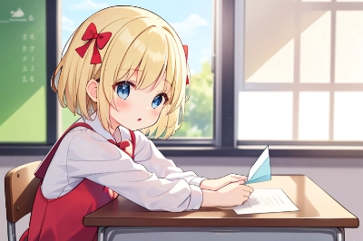 ,In a lively city scene, a young girl with bright blonde short hair and sparkling blue eyes, adorned with a charming red ribbon, stands in front of a popular shop. She looks around at the bustling street filled with people, contemplating joining the long queue with a mix of curiosity and excitement. The ambiance is vibrant and dynamic, capturing the essence of urban life,loli,blond hair,short hair,hair bow,red bow,blue eyes,(High quality: 1.25), (Ultra-detailed: 1.1), (Vibrant colors: 1.05), (Lively and engaging: 1.1)