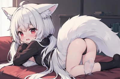 masterpiece, best quality, extremely detailed, anime, girl, skirt, ,cartoon,simple,chibi character,fairy, child, girl, ahoge, twintail, white hair, red eyes, two people, twin, fox girl,smile,cat puppets,,, trip,The background is the street,lively city,mail,paper airplane,Four panel comics,,