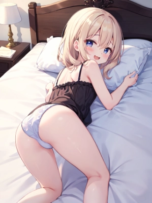 (cute hip, white shirt, gym uniform, dark blue buruma:1.2), short sleeve, bare thigh, (cameltoe:0.7), (crawling on all fours, falling flat, ceiling, rear entry position)(looking back, from behind:1.1), sexual temptation, on white sheet