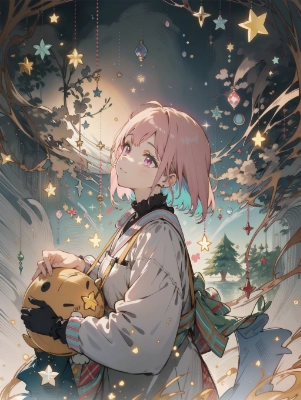 (kawaii, cute girl, solo:1.2), backlighting , military jacket , two side up hair, sidelocks, monocle , gradient hair ,aqua eyes,grin