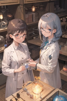 Middle school students girl Japanese whistle ((4girls)) morning sunshine (wearing gym clothes with bloomers) face forward glass atelier a glass workshop club activities ((glass blowing work)) ponytail hairstyle black eye frombelow missing digit fused finger,