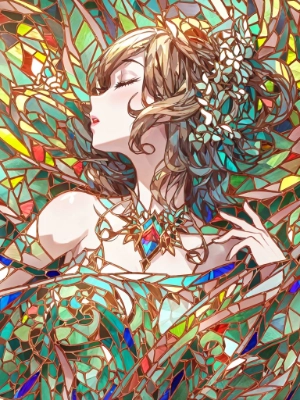 best quality, very aesthetic,ultra-detailed,upper body,backlighting,,(transparent:1.4),see-through,glowing,(stained glass:1.2),