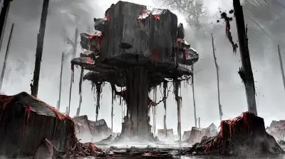 (psycohorror:1.2), destroyed, broken, rotted forest, (many eye balls:1.4), (melting black:1.4), (tentacles:0.6) BREAK wind blow, night sky,