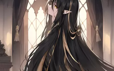 black long hair, white short hair, smile,