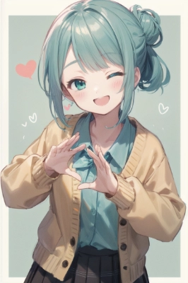 wink, masterpiece, best quality, highres, 1otoko no ko, white pinstriped shirt, Flared skirt, Sneakers, かわいい, flat chest, aqua hair, aqua eyes, half updo, smile, baseball stadium, tigers<lora:flat2:0> <lora:hairdetailer:0.5>,,