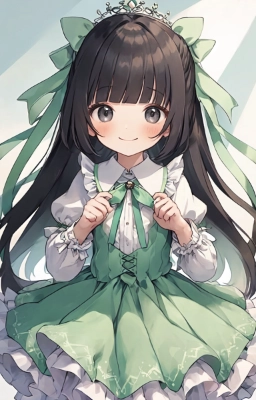 long hair, brown hair,brown Eye,White blouse,blue skirt,White Sox,puff sleeve,(((straight hair))),open mouth,smile,flat chest,Hair Between Eyes,princess Cut, Very Long Sideburn,roundry Head,Droping eyes,cute,Meekness,Bob Cut,long back hair,sailor collar,(((Solo))),1 girl,Singing,Fullmoon,