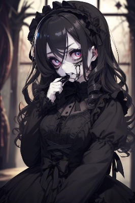 (Gothic lolita:1.3),(Beautiful detailed eyes),(Loli face:1.2),(Lori:1.2),(Beautiful detailed eyes),(highlight in eyes:1.2),(length hair,Shiny hair:1.3),(Curly hair at the roots,:1.2),(((tareme))),(Black hair),(tongue),(Hats),(borgar),(London),(natta),(Christian Lassen),(Illustration),(Best Quality),(Ultra-detailed:1.2),(top-quality),(masterpiece)