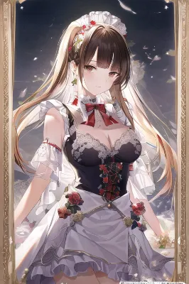 masterpiece, best quality, "Flower Print Red Maid" - Red flower print maid outfit. A soft impression costume with white flower print and decorated with frills and ribbons., with blush cheeks, official art, {{ultra-detailed}}, {{high resolution}}, dynamic fuzziness, colorful, cowboy shot, underwear, girl ,solo, 20 years old, beautiful detailed hair, beautiful detailed eyes, blunt bangs, braid hair, twintail, side ponytail, bob, Shostakovich, kramskoi, realism,