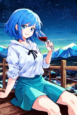 masterpiece, best quality, extremely detailed, anime, girl, skirt <lora:noline:1> <lora:hairdetailer:0> , wine red, watercolor, colorful, wine red, night view, star, Older sister. Drunk. Wearing a suit. Restaurant. Western. Black hair. Black eyes. Blushing. Neat and tidy. Cute. Smiling. Anime-style, , wine red, watercolor, colorful,
