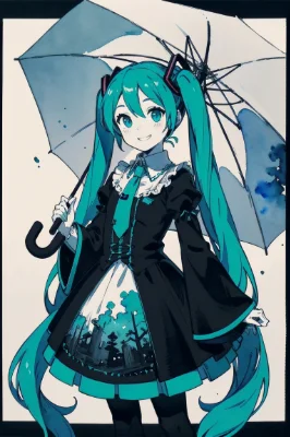 Twins, Gentle Smile, Hugging, Symmetrical Composition, Front View, Flower Field, Bouquet, Matching Outfits, Soft Lighting.(watercolor:1.4), pretty, lovely, cute, kawaii, illustration, pixiv, Kyoto Animation, anime, manga, artist by Tetsuhiro KOSHITA, comic, game, ((Hatsune Miku)), turquoise hair, big eyes, sparkling eyes, turquoise eyes, round eyes, tareme, dropping eyes, thick outline, slender, flat chest, toddler, infant, child, ,