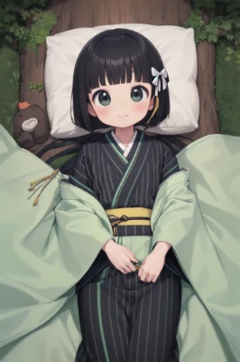 (((2 girl))),(((very longest hair))),black hair, smile, straight Hair,hair ribbon,mintgreen stripe,Black Eyes,flat chest,straight Across bangs,princess Cut, Very Long Sideburn,roundry Head,Droping eyes,cute,Meekness,Bob Cut,long back hair,12 years Old,loli, gothic dress,