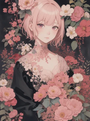 absurdres, highres, (white background:1.3), watercolor, (pale tone:1.3), (rough sketch:1.3), (blurry:1.3), (smudge:1.3), (hard light, studio light, light rays, dappled light, reflection, shadows, ray tracing:1.0), ///, kawaii girl, blue long hair, Hairpins, ribbons, shirts, flower, upper body, <lora:flat2:1>, sofa, room, window, cushion, vase, lamp, curtain